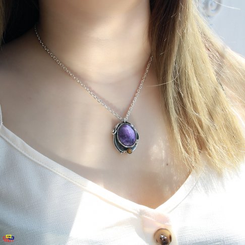 紫龍晶上的千絲萬縷 意味著相遇每一個緣分 共同走上良善光明的道路 純銀的線條 代表生生世世的互相守候 共譜出善緣的美好