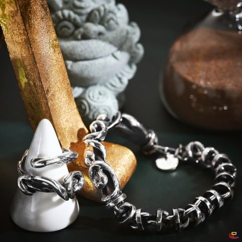 借鑿中國水墨畫的藝術線條 捕捉 一縷煙 稍縱即逝的特性 用延展性多變的純銀 娓娓道出東方優雅的人文之美 綿延而動人的不規則藝術 在戒指上活靈活現方式呈現