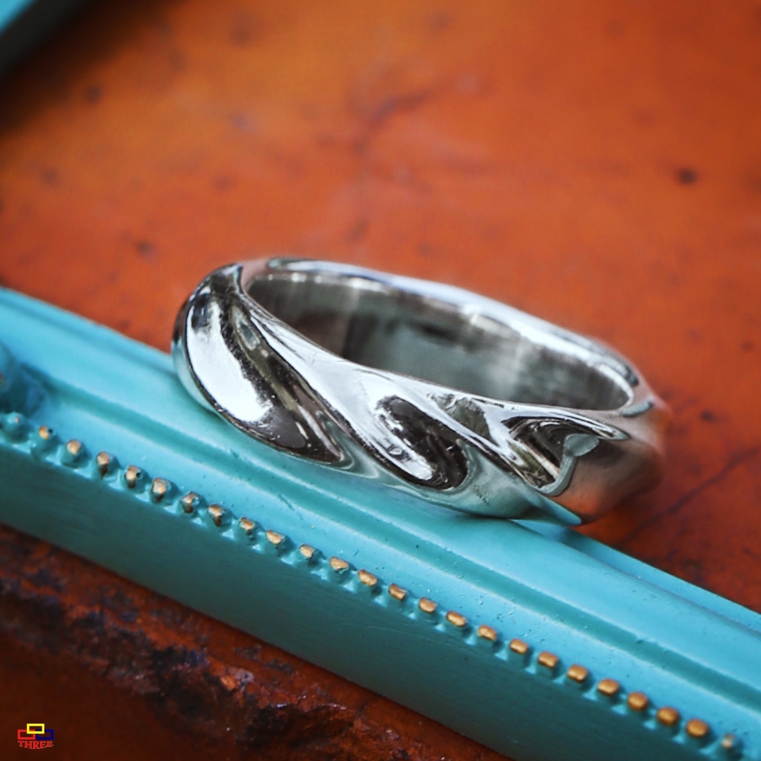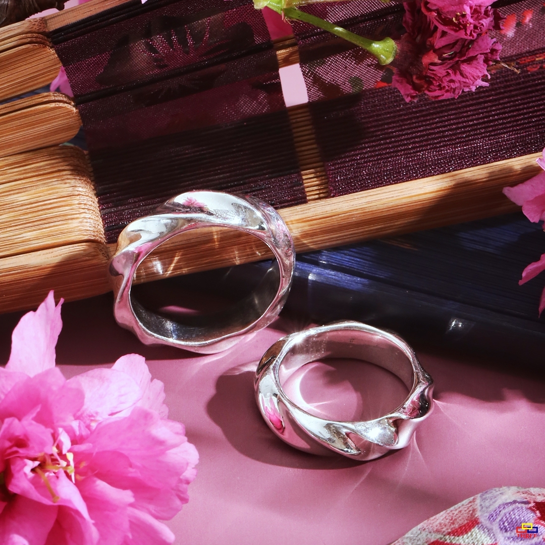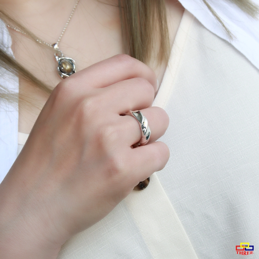 純銀的金屬光澤 有一種說不上來的透視感 毫無掩飾反的流線感 柔美優雅的調性 猶如漸起的漣漪,透過凹面的設計無限綻放