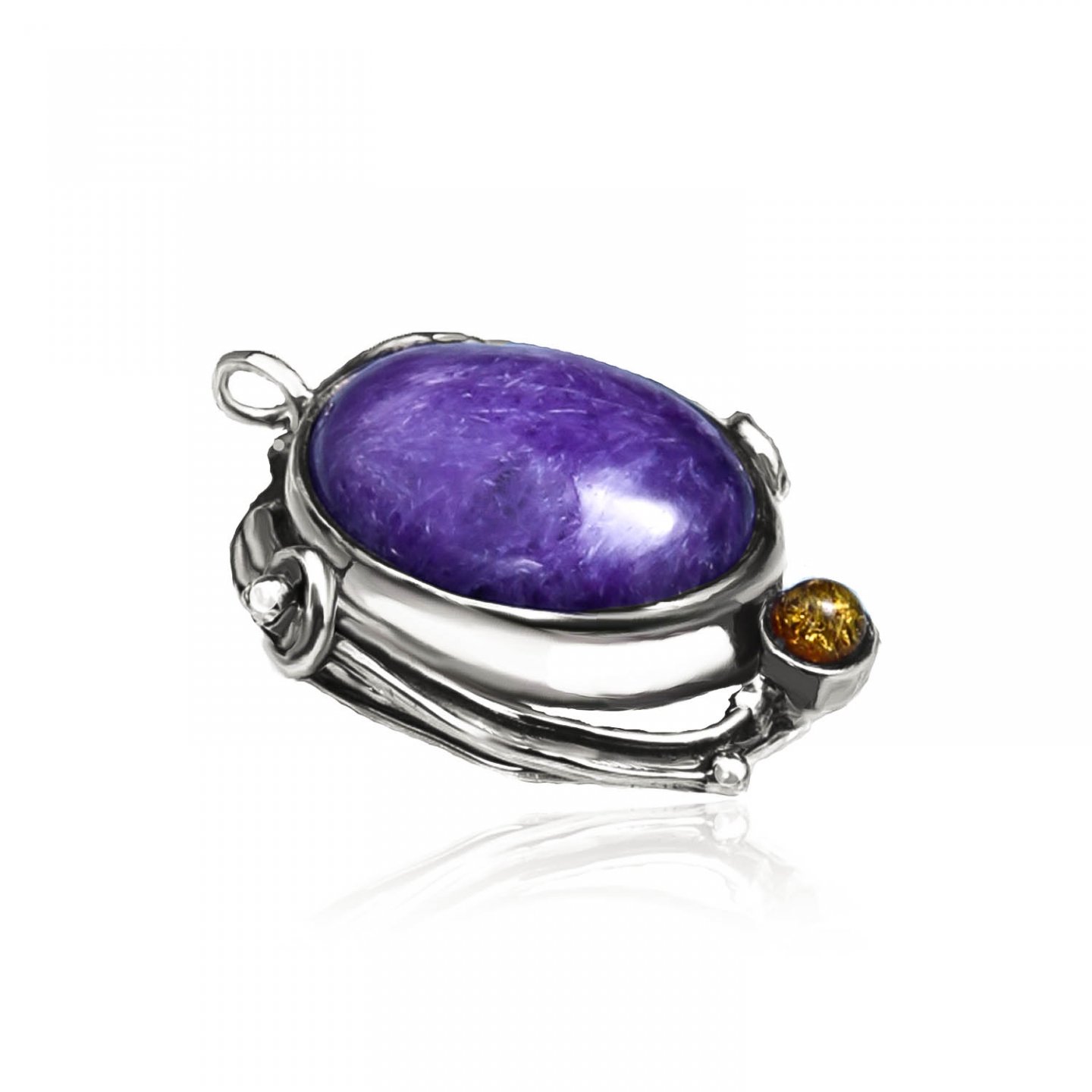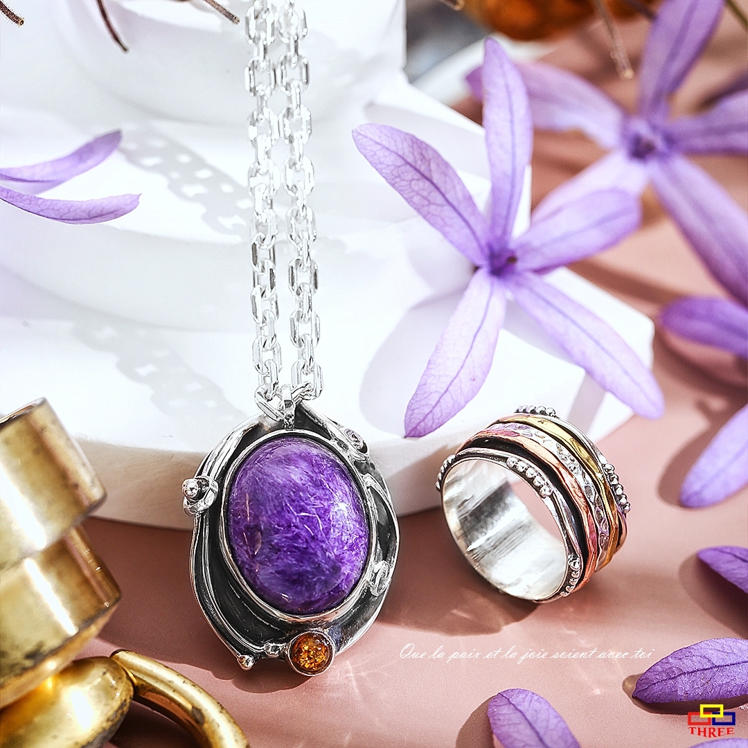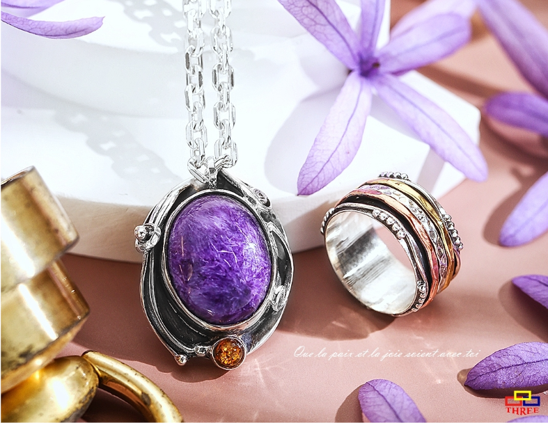 紫龍晶上的千絲萬縷 意味著相遇每一個緣分 共同走上良善光明的道路 純銀的線條 代表生生世世的互相守候 共譜出善緣的美好