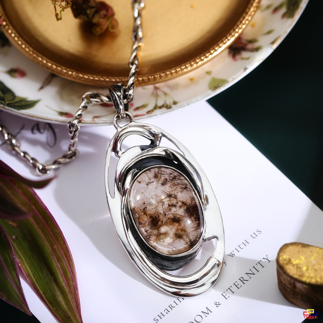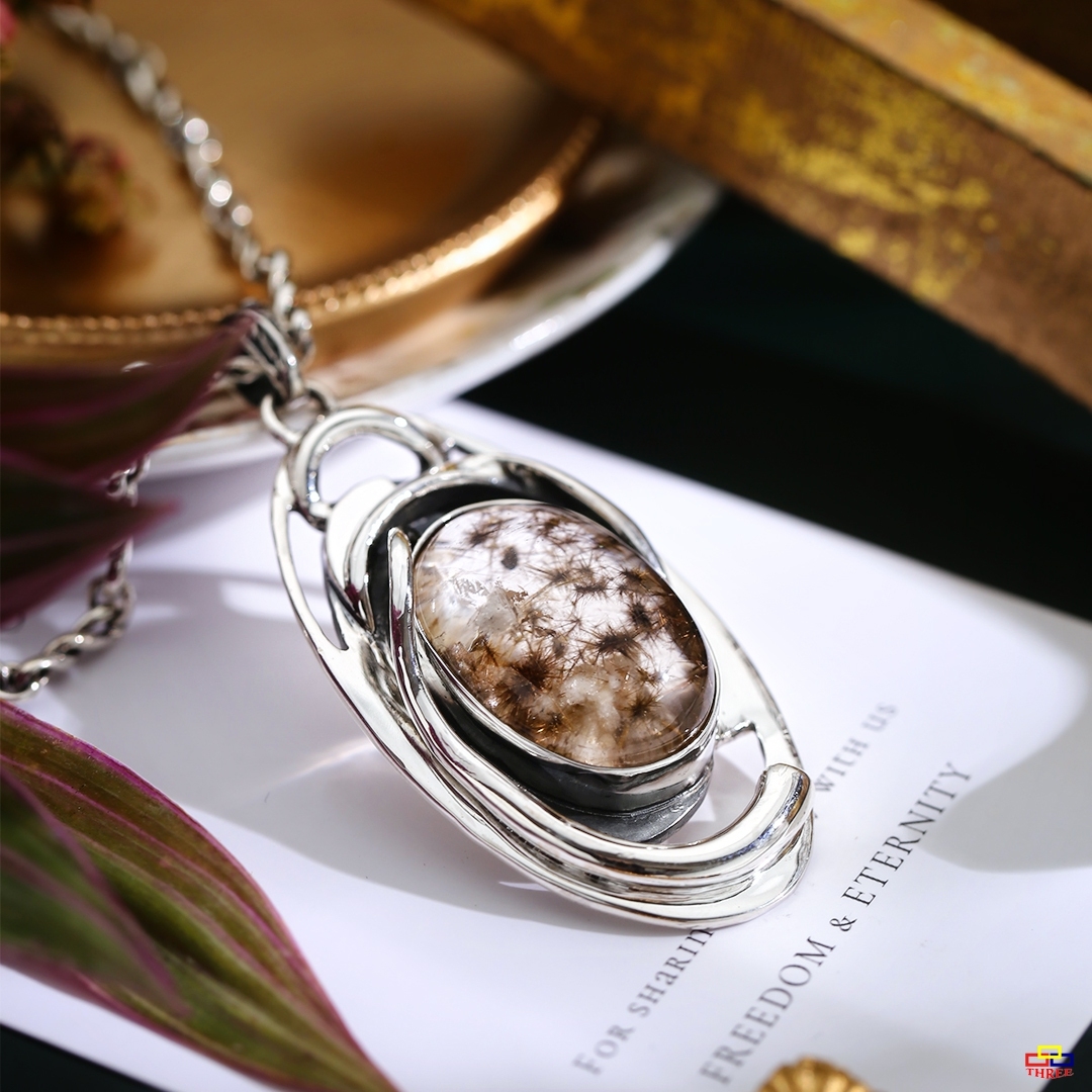 緣 是一種說不上來很微妙的狀態 橢圓形菊花鈦晶盛開的結晶之美 盛開於人間之美 與你有緣相逢 上下攀附水晶的純銀線條 厚實而靈活的造型 散發出生動活潑的氣息 圓滿的水晶代表著緣分相融 這次邂逅而感慨萬千