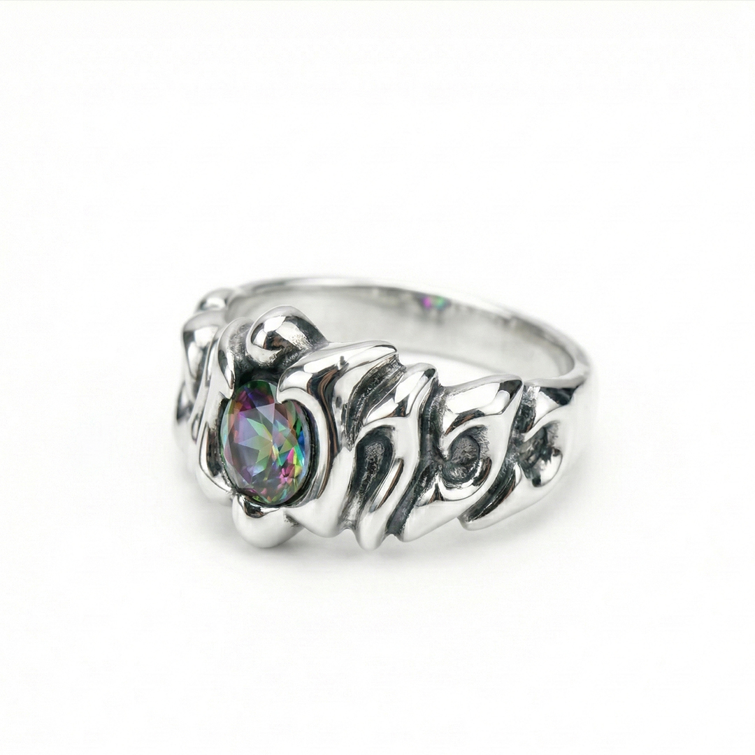 佩戴時彰顯強烈的個性與氣場 厚實的銀質質感 帶來穩重的手感 猶如一件藝術品緊握於指間 每個細節都雕刻出力量與優雅的平衡 閃耀的寶石點綴其中 恰到好處地提升整體的精緻感 彷佛每一刻的生活經歷都在這枚戒指上得以封存