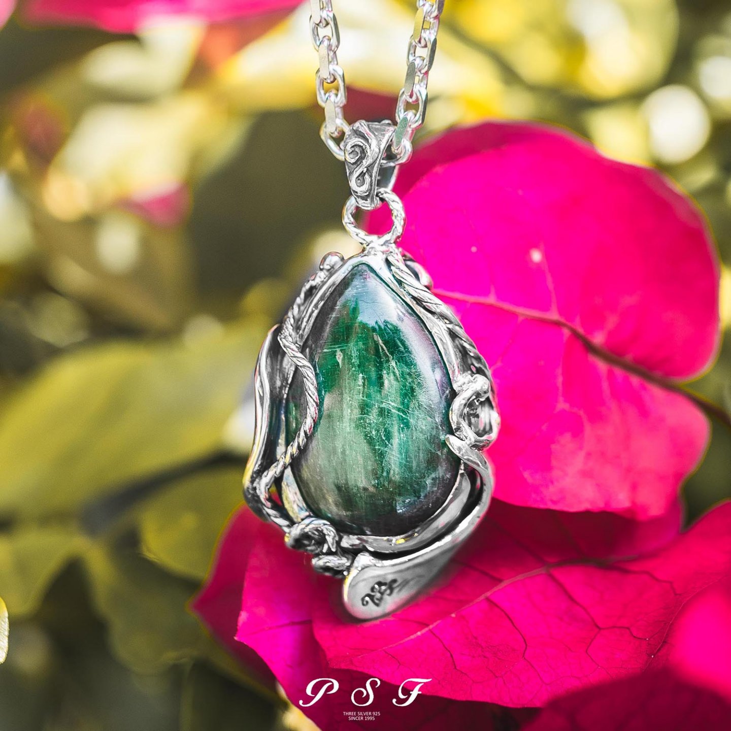 如晨霧瀰漫的林間 幽深的綠意在心頭流轉 蘊含大地的靈氣 銀線環繞 猶如藤蔓輕擁森林之心 佩戴它 像是攜帶一段古老森林的祝福 讓你在每個選擇之間 找到最清明的方向